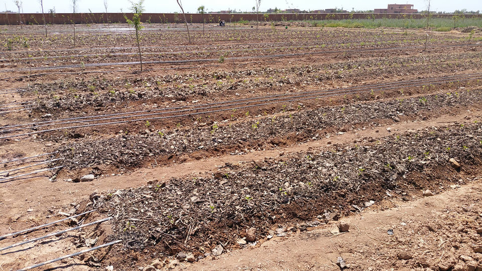 Ontwerp van een intensieve biologische boerderij om lokale netwerken in de regio van Marrakech te voorzien van het agroforestry-model dat holistische begrazingscorridors integreert (Allan Savary).